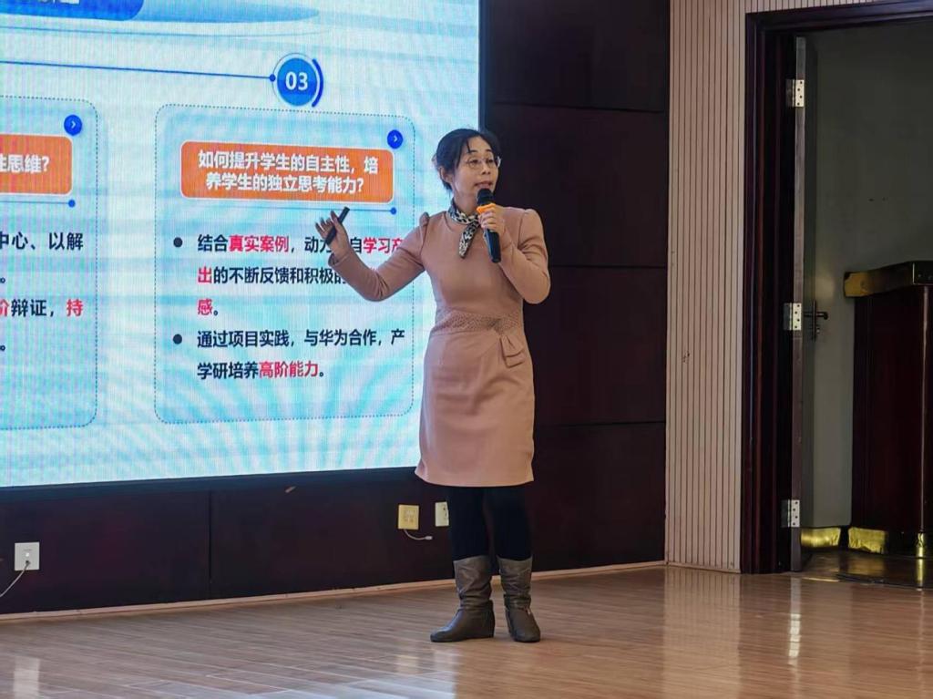 湛燕老师汇报了在数据库系统入门课程中,将明辨性思维培养作为主线,确立“思维训练优先”的理念,构建“螺旋上升”的六阶段教学路径,建立多维评价体系,注重过程反思与元认知能力提升,引导学生从“被动接收”转向“主动思辨”,培养学生成为能分析、会权衡、善优化、懂反思的系统思考者与问题解决者。