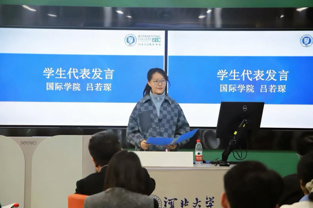 国际学院2022级金融专业学生吕若琛作为学员代表发言。她代表全体参训学子郑重表态:将严格遵守训练营纪律,全程认真参训、扎实锤炼本领,力争学以致用,把所学知识转化为实实在在的就业竞争力,不负学校悉心培养与殷切期望。