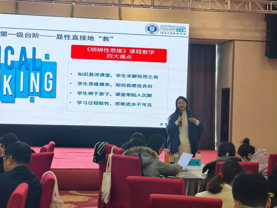 本次ISEC教师岗前培训包含清华大学、香港大学ISEC专家的专题讲座、优秀ISEC教师代表的教学经验分享、教学研讨交流、思维拓展训练以及教学大纲实例审核等多个环节。蒋莹和胡昕婷老师通过两个案例,分享明辨性思维贯穿教学的教学设计方法。此次培训旨在助力教师深度领会本科教育国际化理念,精准掌握ISEC课程的教学要求,熟练运用将明辨性思维融入教学过程、科学制定教学大纲,以及以形成性评价为主的考核学生的评价体系等教学方法与操作规范。