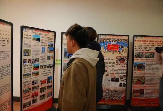 会场外,此次活动还设计了“暑期社会实践系列展”,展厅内,每一块海报都凝聚着同学们的巧思与创意,是他们亲手设计的成果。丰富的图文、独特的排版,无一不彰显着同学们的用心。这种由同学们自主设计海报的形式,不仅展现了他们的才华,更让每一块展板都充满了青春的活力与创意的火花,每一处细节都在诉说着同学们对展示内容的独特理解与倾情付出。