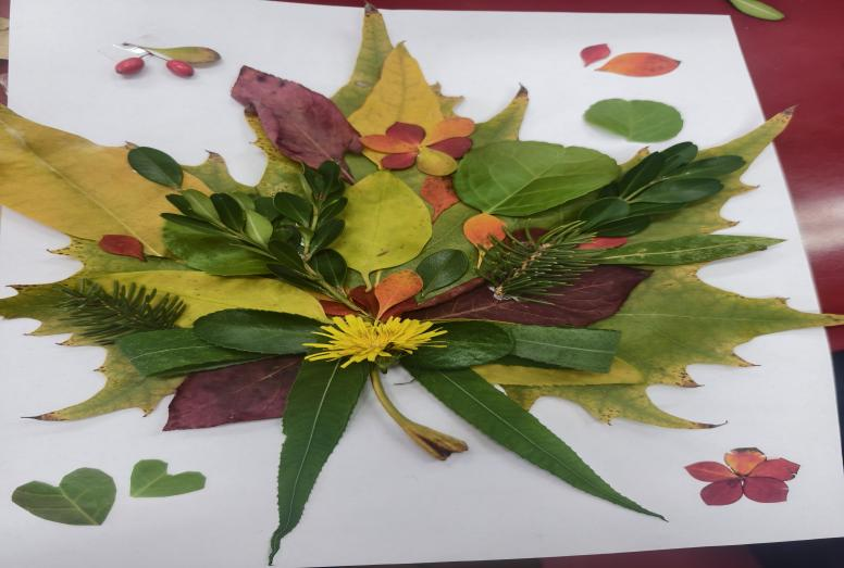 活动现场,各位同学们分工协作、创意迸发。大家围坐在一起,将收集来的落叶铺平、修剪,相互交流想法、分享技巧。原本看似普通的落叶,在大家的巧思与巧手之下,变成了一件件充满创意与温度的手工作品。整个教室里充满了欢声笑语。