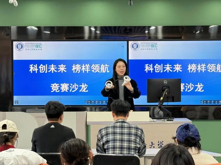 活动伊始,在胡昕婷老师的带领下,同学们走进VR虚拟仿真实训中心,结合实训设备,生动讲解了VR技术的原理、应用场景及发展趋势,引导同学们主动思考“如何将VR技术与竞赛项目深度融合”,在思维碰撞中拓宽创新视野,为竞赛项目的创新方向提供了全新灵感。