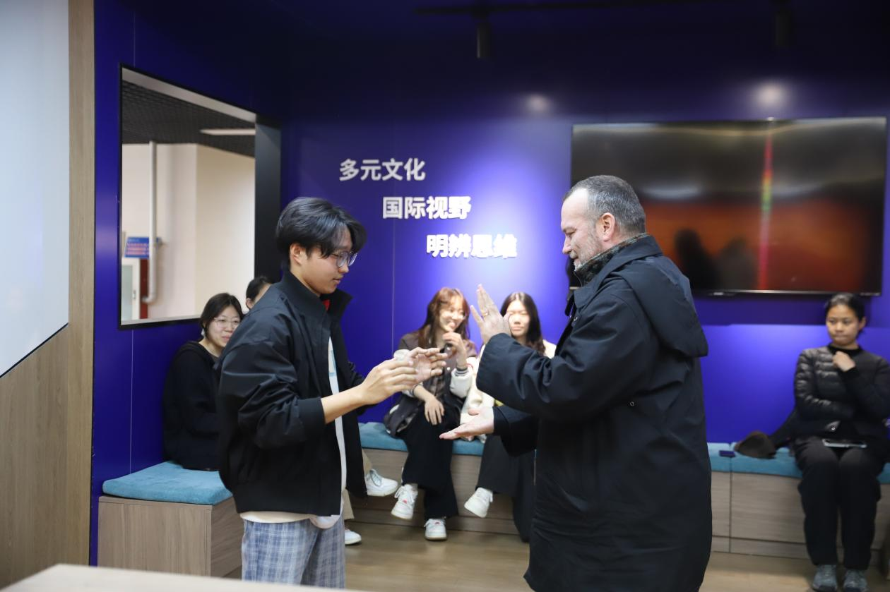 活动伊始,英语版“逛三园”游戏迅速点燃现场氛围。在外教的趣味引导下,同学们分组围坐,用英文开启了一场脑洞大开的春日“游园”:有人在“春日风物园”里细数繁花、飞鸟、风筝等春日意象,用鲜活的词汇勾勒出春天的轮廓;有人分享踏青赏花、郊野放风筝、漫步校园的惬意日常,用生动的描述传递春日的快乐;还有人在畅谈对春天的理解,从“spring”的寓意聊到春日带来的成长与希望。快速的反应、灵动的表达、此起彼伏的笑声,让现场彻底沉浸在轻松愉悦的全英文语境中,同学们也在互动中迅速拉近距离,敞开心扉。