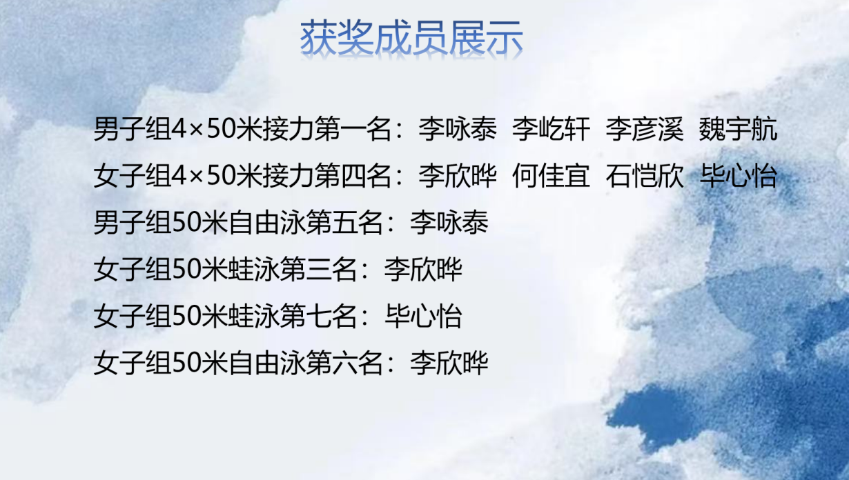 碧波逐浪,青春绽放。此次赛事中,我院游泳健儿以沉稳姿态迎战赛场,以团结之心凝聚力量,以拼搏之姿展现风采,用坚持与热爱书写属于自己的荣耀篇章。优异成绩为本次游泳比赛圆满落幕,既是团队同心同行的最好证明,亦是成长路上的温暖收获。愿队员们不负热爱、继续向前,在未来乘风破浪,向着更高目标奋勇前行。