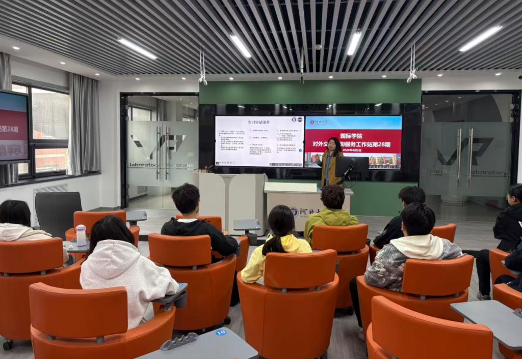 4月9日,学院举办“国际学院对外交流咨询服务工作站”第28期国际交流学习促进活动,旨在拓展国际视野,提升学生国际交流能力,进一步加强国际化建设。本次活动邀请河大国际教育服务中心老师担任讲解,学院19名学生参加。项目建设与质量保障办公室老师组织并参加活动。